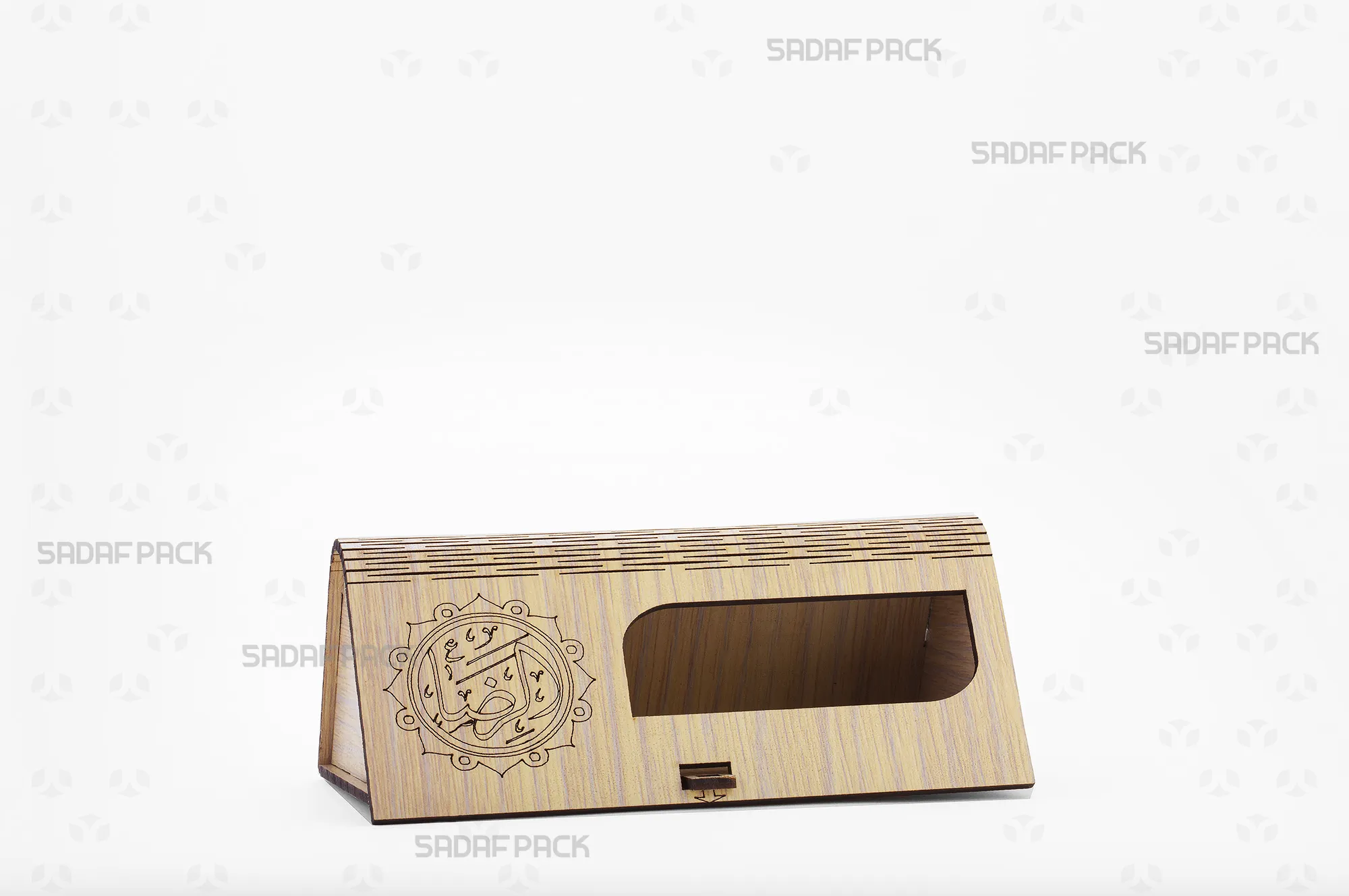 باکس چوبی حکاکی کادویی قوطی 5 گرم فلزی و آذین متوسط
