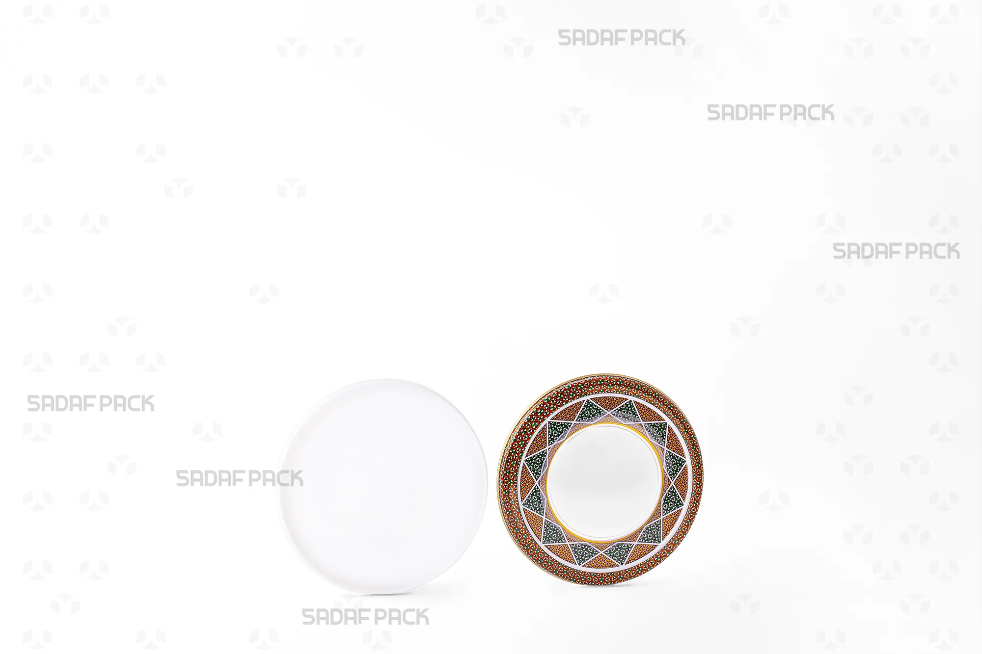 دسته بندی ها ظرف فلزی زعفران دایره کف سفید, ظروف بسته بندی فلزی زعفران