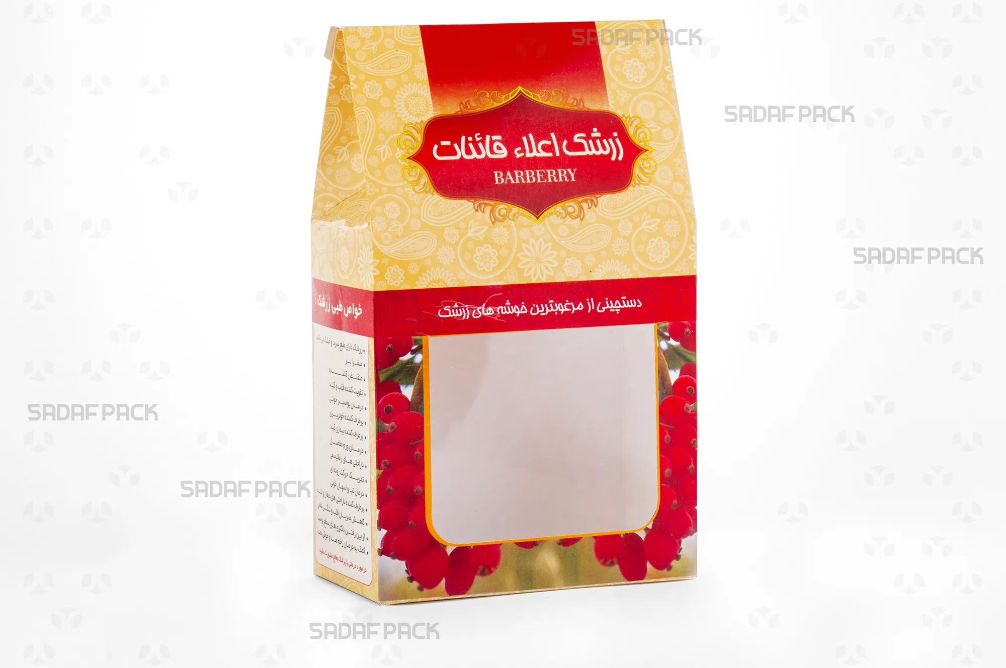 | ابعاد | پاکت زرشک کوچک, پاکت زرشک بزرگ, پاکت زرشک ایستاده, پاکت زرشک نیم کیلویی, پاکت نخودچی کوچک, پاکت نخودچی بزرگ |