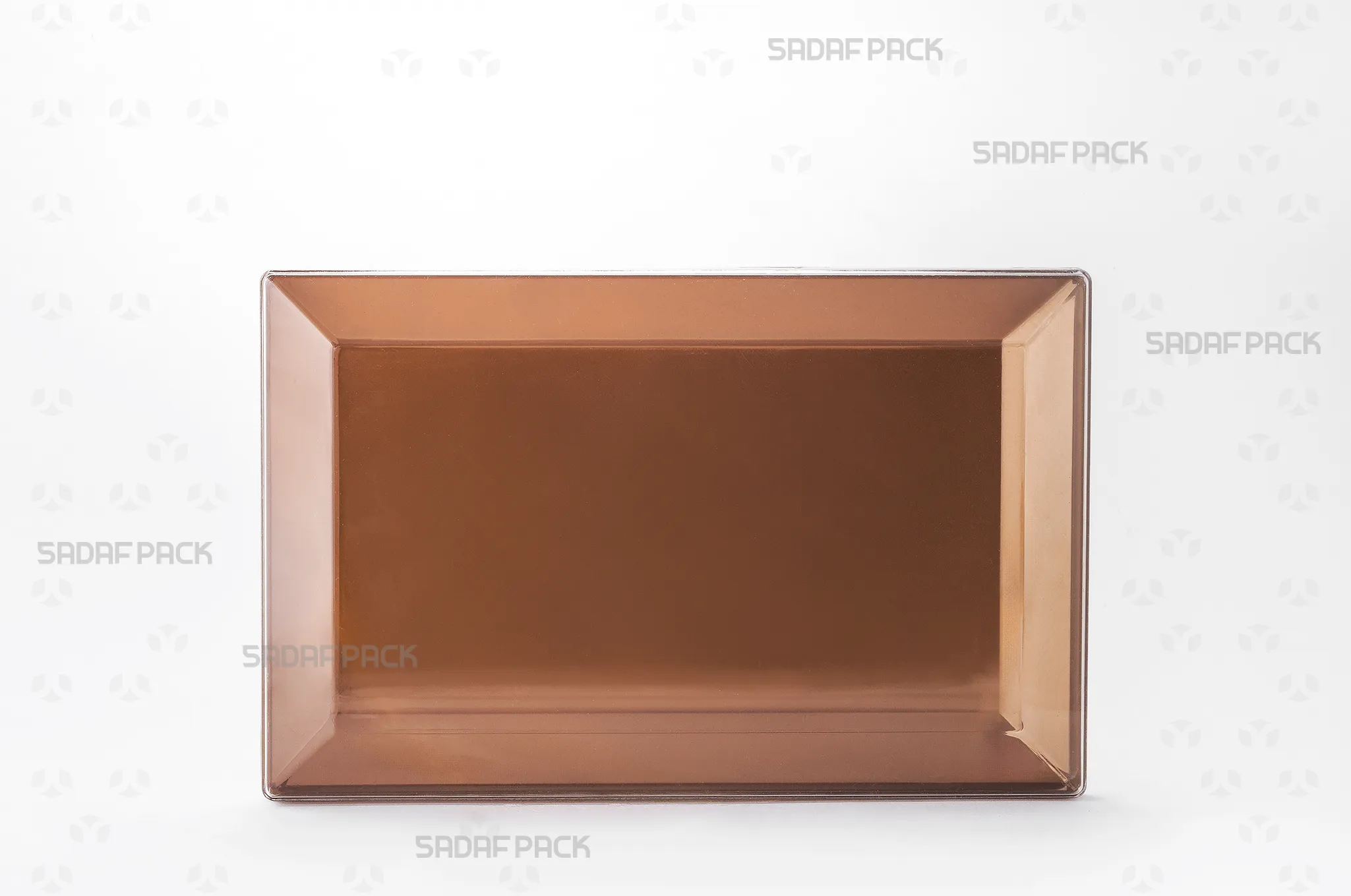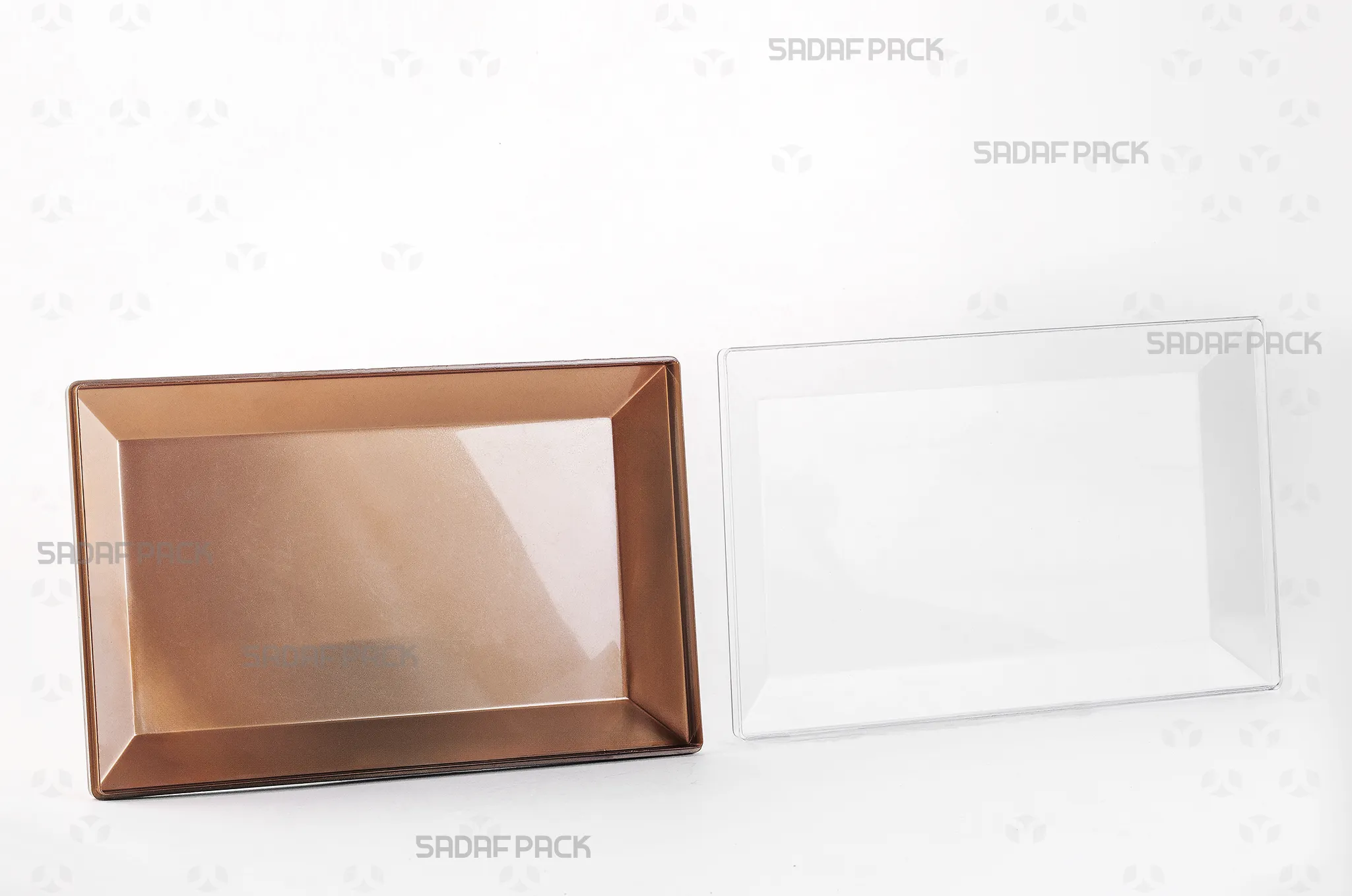 ظرف کریستالی طرح مستطیل طرح دار کف طلایی